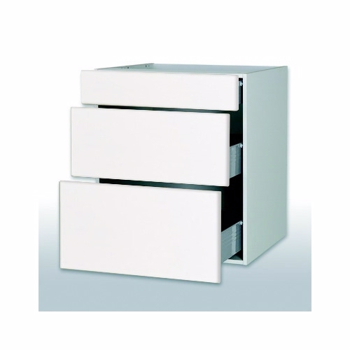 Bad skuffeskab i Hvid Højglans H: 57,6 cm D: 51,0 cm – 3 skuffer fuldudtræk/softluk – Bredde: 40 cm